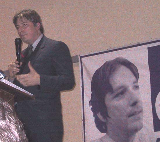 Some of the other speakers included the president of the restaurant and hotel workers labor union, a woman who has been a longtime leader in the Mission Latino community, and Peter Camejo, who ran for governor as a Green in the last two elections here in California. I actually voted for him in 2002 because I couldn’t stomach a vote for Davis — my first “protest” vote. It was exciting to see him speak. He has many intelligent ideas.