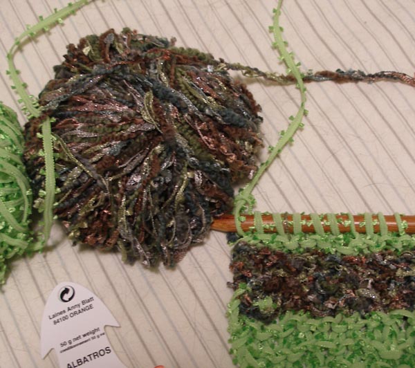 Here’s a picture of the scarf I have been working on. I picked out the multicolored yarn today. The woman at the shop told me that I was using some very advanced yarns for a first project. yay!